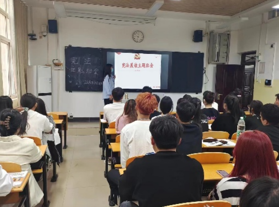 宪法是我国的根本大法,是保持国家统一、民族团结、经济发展、社会进步和长治久安的法律基础,是中国共产党执政兴国、团结带领全国各族人民建设中国特色社会主义的法制保证。为培养学生的法制观念,引导学生形成“学法、知法、守法、护法的意识,2023年3月20日下午,我院开展了“宪法宣读”主题活动。