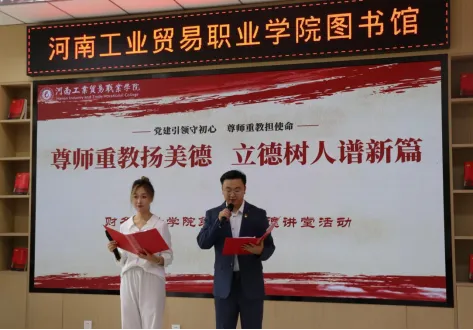 为深入贯彻二十大精神,践行立德树人根本任务,提升大学生思想政治教育工作质量,充分营造尊师重教的育人氛围,2024年5月21日下午,我校财务会计学院在图书馆二楼思政空间举办了主题为“尊师重教扬美德、立德树人展新篇”的第六期道德讲堂。本次活动旨在通过多样化的环节,弘扬尊师重教的传统美德,提升师生道德素质,共同构建和谐的校园文化。校党委委员、副校长李强出席活动,财务会计学院党总支副书记张燕斐、副院长赵瑞、全体教师及学生代表参加活动。