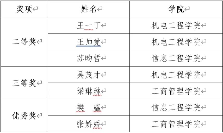学生获奖名单