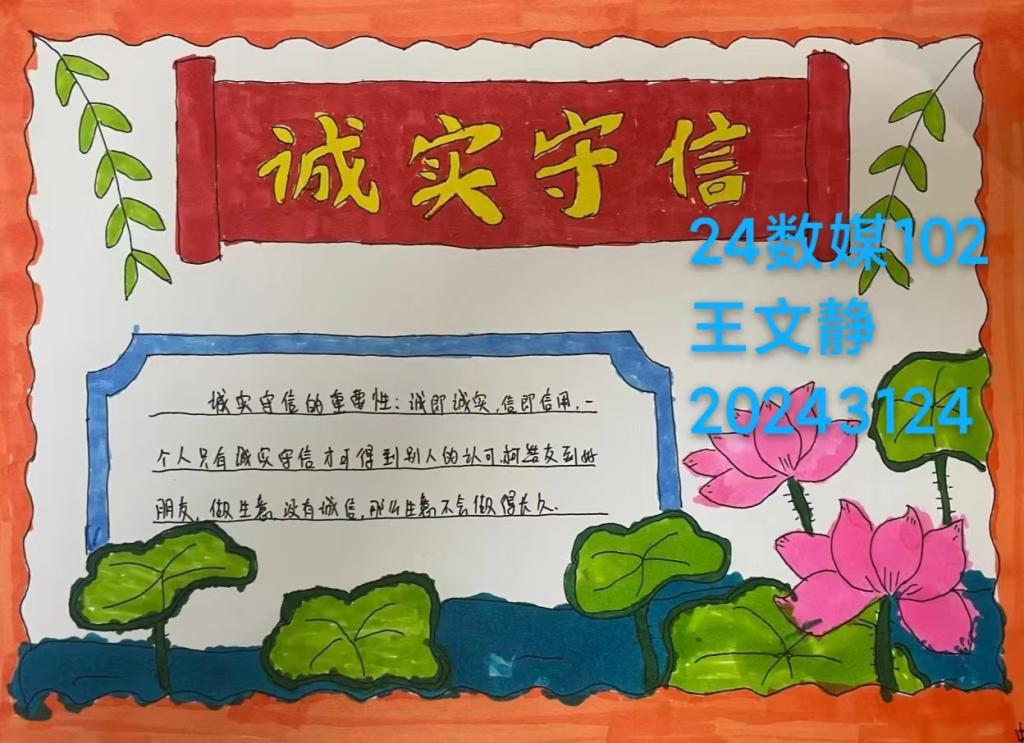 本次诚信教育活动旨在通过手抄报展示的形式,激发学生对诚信的思考和感悟,增强学生为人处世、恪守诚信的原则。通过活动,让同学们深刻认识到诚信的重要性,自觉践行诚信行为,将诚信内化于心、外化于行,营造诚信、友善、和谐的校园文化氛围。
