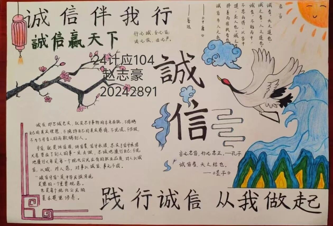在活动过程中,同学们积极参与,认真对待每一份手抄报的创作。他们通过查阅资料、讨论交流,深入了解诚信的内涵和价值,将所学所思融入到手抄报中。一些同学还结合自身经历,分享了诚信在日常生活中的重要性和实践意义,引发了大家的共鸣。