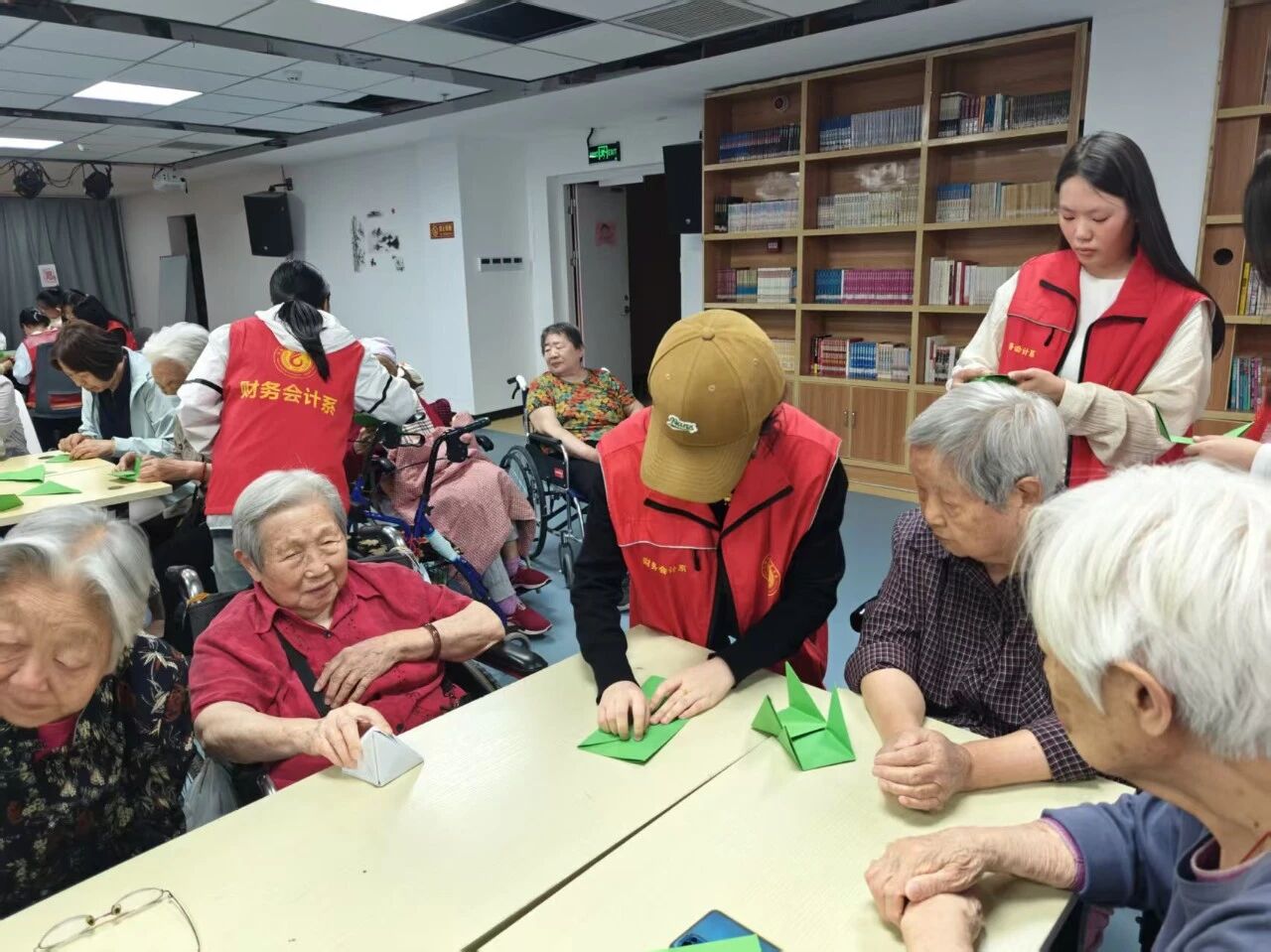 为弘扬“受助思源、反哺社会”的感恩精神,引导受助学生以实际行动回馈国家和社会关怀,大数据会计学院以志愿服务活动为载体,在践行社会主义核心价值观的浓厚氛围中,我院积极响应国家号召,组织受到国家资助的学子开展“感恩反哺”志愿服务实践活动。近日,一群充满爱心的志愿者走进老年公寓,与老年人亲切交流,共同用彩纸折叠出形态多样的“粽子”、“荷叶”和“桑叶”传递温暖,展现了新时代大学生的社会责任感和感恩情怀。