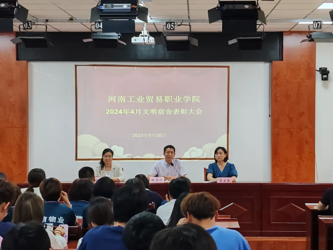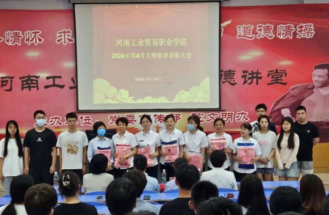 赵连灯宣读了文明宿舍表彰文件;王秀华宣读了3月和4月文明宿舍获奖名单,各二级学院副书记为校级文明宿舍学生代表颁发荣誉证书。