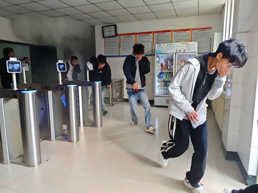 宿舍区警报突然响起,消防应急逃生演练正式开始。在学校保卫处人员的现场安排与引导下,同学们迅速用湿毛巾捂住口鼻,弯腰低姿沿楼道安全标识有序撤离。大家全程不慌不挤、动作规范,短短几分钟便全员安全抵达楼外集结点,既练熟了逃生流程,也筑牢了校园消防安全防线。