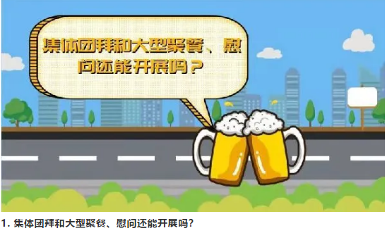 不建议各单位、社会团体开展集体团拜和大型聚餐、慰问,避免人群聚集,减少疫情传播风险。
