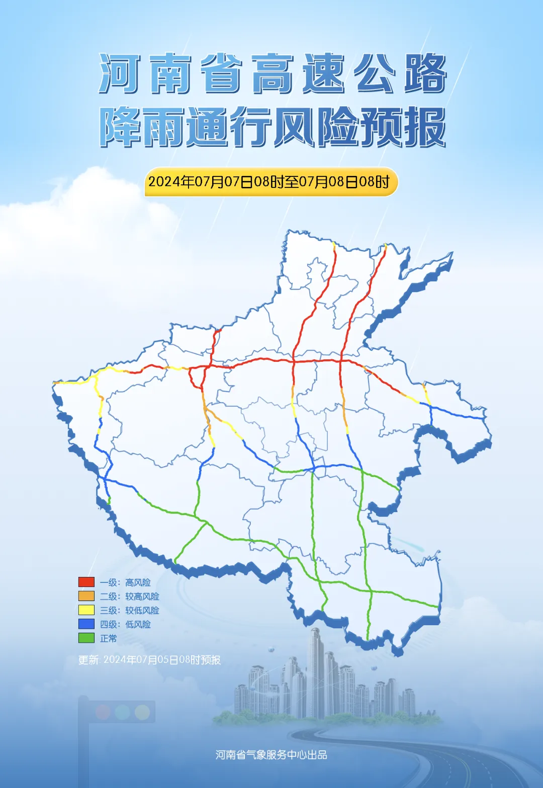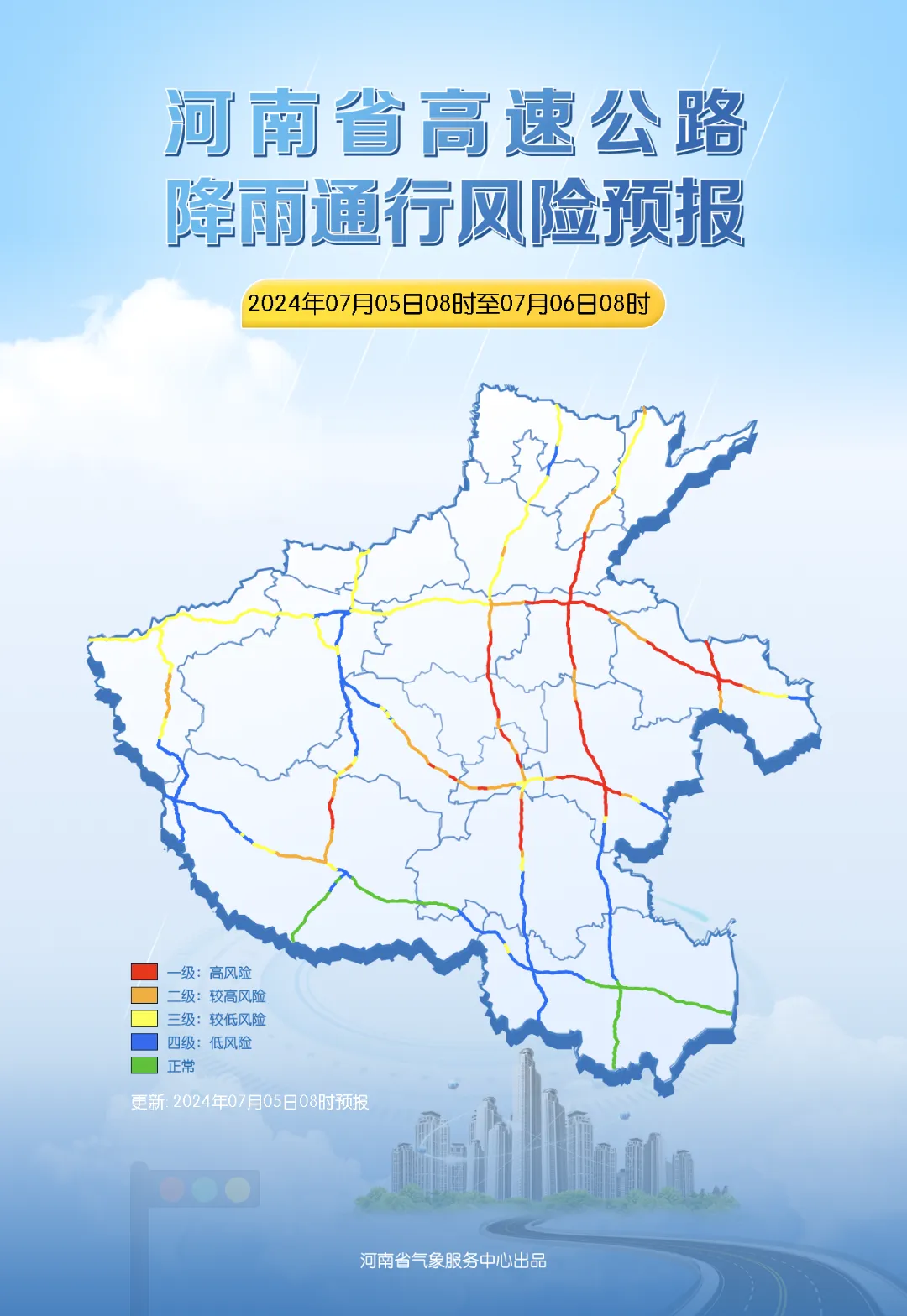 雨天能见度低,路面湿滑积水,将对交通出行有一定的不利影响,预计今天和后天,我省淮河以北大部高速公路有降雨通行风险。北中部、东部部分路段有较高风险,以上地区的人们,要注意谨慎驾驶。