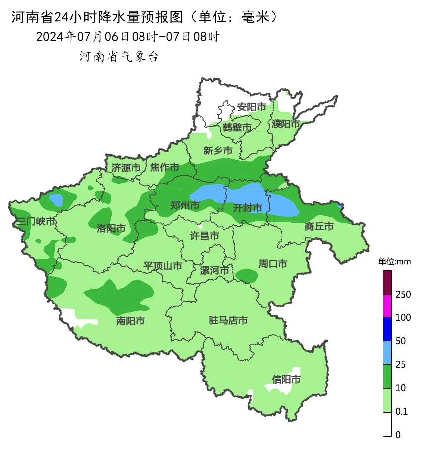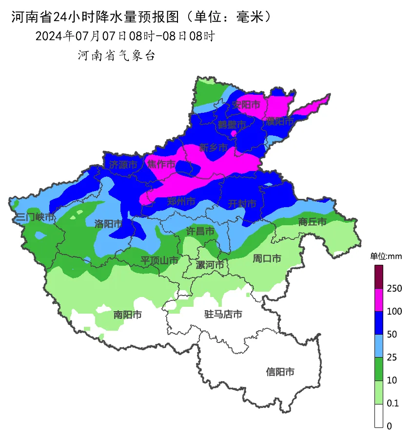 今天下午到夜里,全省阴天,有阵雨、雷阵雨,淮河以北大部有中到大雨,其中安阳东部、濮阳、新乡东部、郑州东部、开封、商丘、周口、许昌、漯河、平顶山东部、南阳北部、驻马店北部部分县市有暴雨,局部大暴雨,并伴有短时强降水、雷暴大风等强对流天气。明天,全省多云到阴天,大部有阵雨、雷阵雨,中东部部分县市有中雨。7日,全省多云转阴天,淮河以北有阵雨、雷阵雨,北中部有大到暴雨,局部大暴雨。8日,全省阴天,大部有阵雨、雷阵雨,黄淮之间有中到大雨,东部、南部部分县市有暴雨。9到10日,全省阴天,黄河以南有阵雨、雷阵雨,西部、南部部分县市有大到暴雨,局部大暴雨;其他县市局部有阵雨。11日,全省阴天,南部有小到中阵雨、雷阵雨,东南部部分县市有大雨或暴雨。