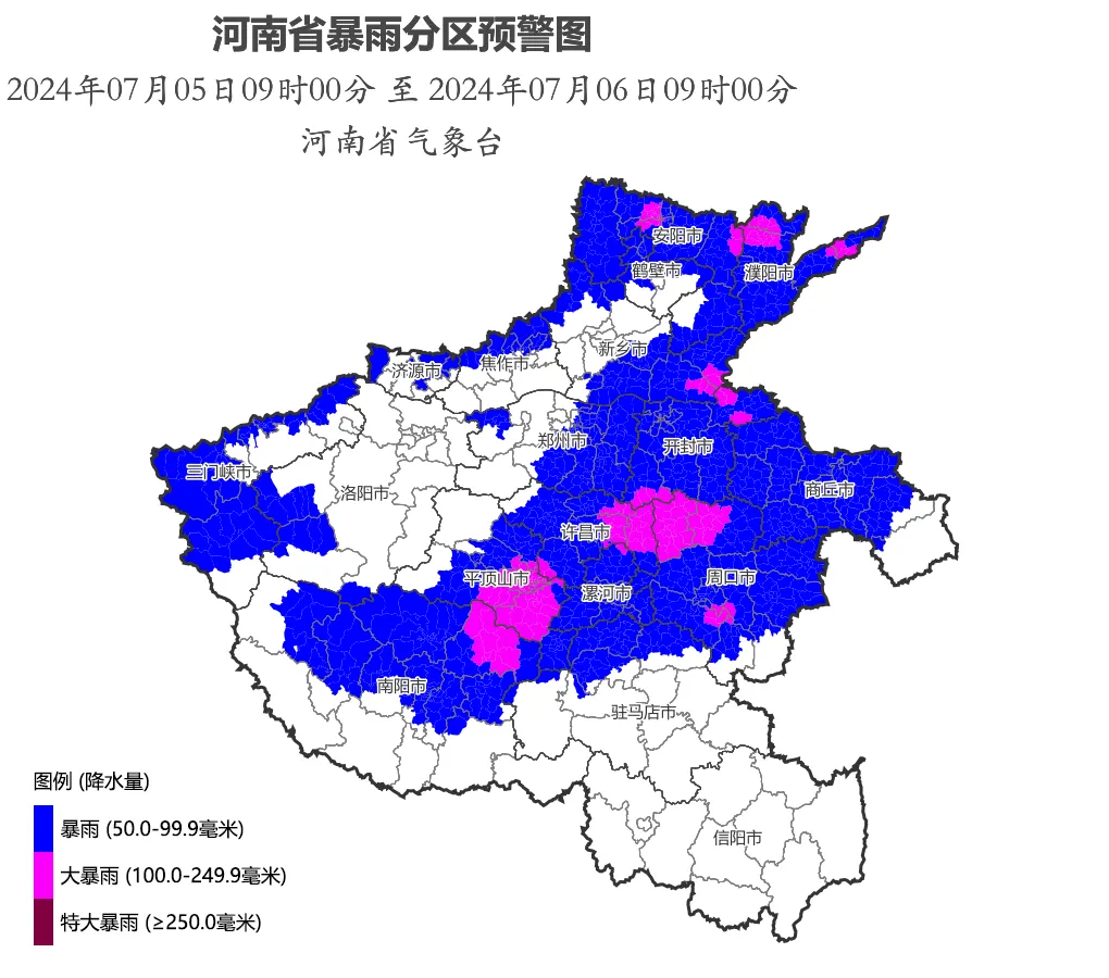 河南省气象台2024年7月5日9时发布暴雨蓝色预警