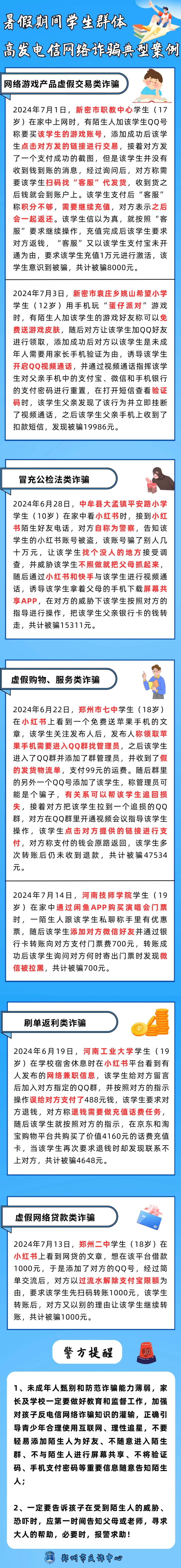 近期高发!郑州警方曝光5类暑假学生相关典型案例