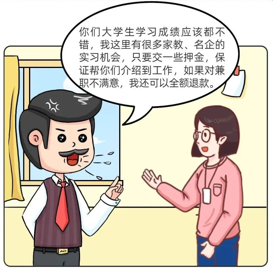 学生们应通过校内助学机构或者有相关营业证件的正规中介寻找兼职,如对方提出缴纳中介费等要求,要提高警惕,不轻易相信。