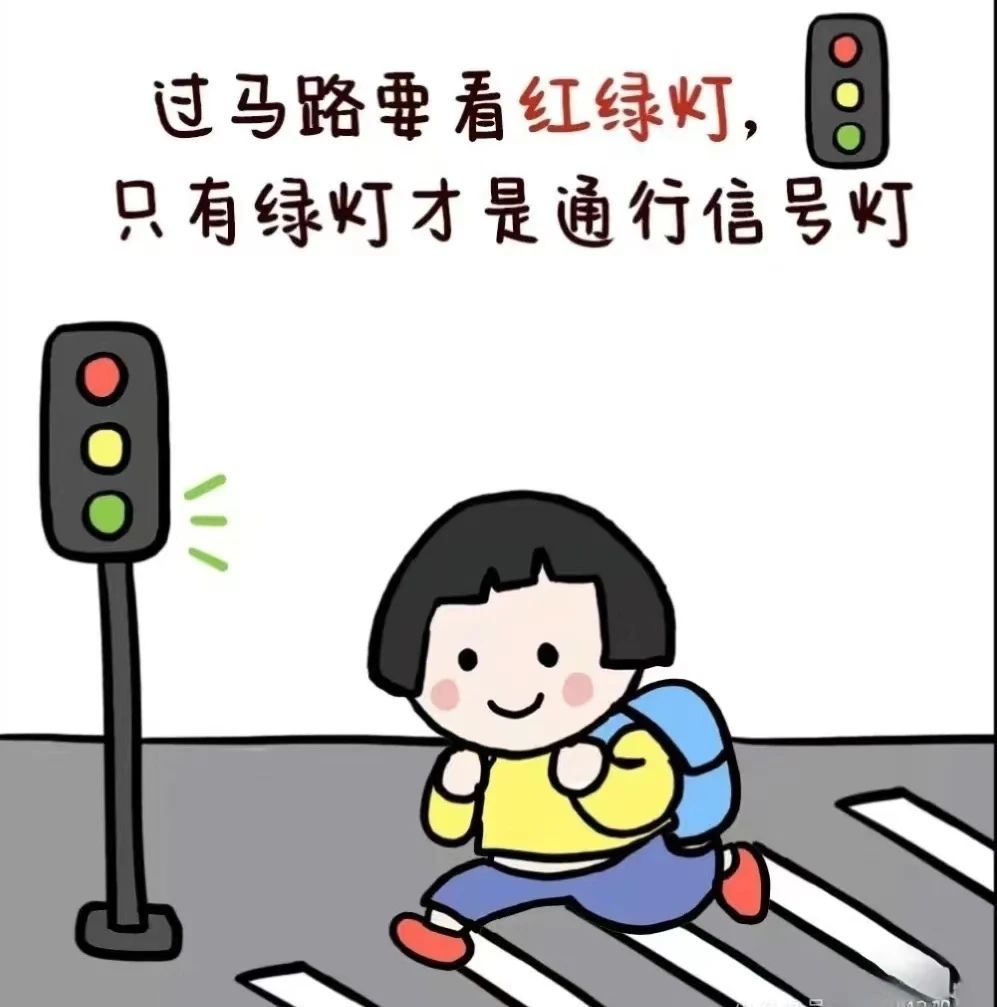 2. 不闯红灯,红灯停,绿灯行,横穿马路时,要走斑马线。