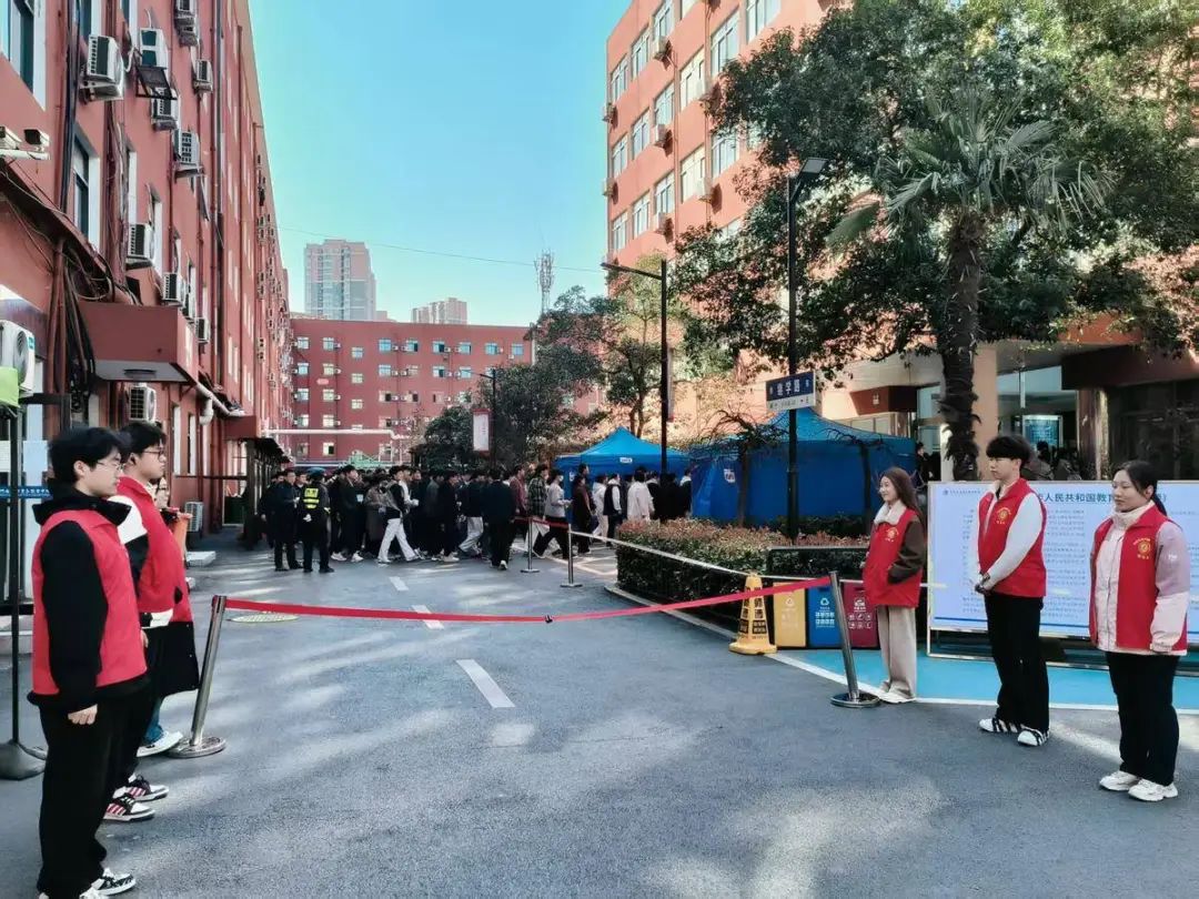 考试当天,学生处提前制定周密方案负责考生入场秩序维护及突发情况处理统筹等,同时组织各二级学院开展“暖心送考”行动,确保考生准时、安全抵达考点。志愿者们也早早到达现场,迅速进入工作状态。