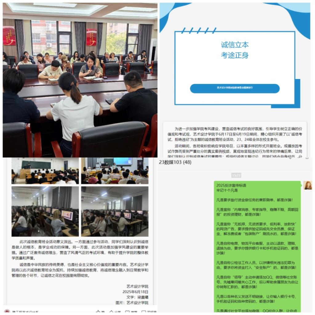 紧扣人才培养关键环节,将诚信教育融入教育教学全过程。各院(部)以考风考纪建设为切入点,通过专题学习、主题宣讲等方式,深度解读考试纪律,明确违纪后果,引导学生树立诚信应考意识,营造风清气正的考试氛围。结合暑期社会实践,建立诚信教育长效机制,引导学生将诚信理念内化于心、外化于行,形成“知信、守信、用信”的良好风尚。