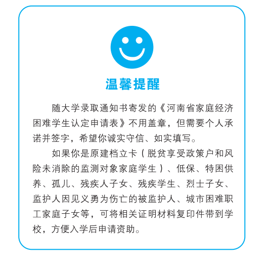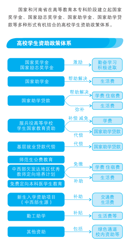 奖励纳入全国招生计划内的品学兼优的家庭经济困难全日制本专科(含高职、第二学士学位)在校生,每生每年5000元,颁发河南省教育厅统一印制的荣誉证书。
