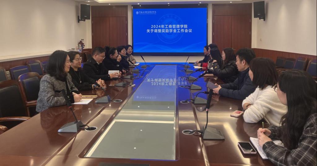 2024年11月12日,工商管理学院在学院办公室召开了学生资助工作评审会议。学院副书记张慧、副院长孟立慧、副书记雷琳及全体辅导员参加了会议,会议由副书记雷琳主持。