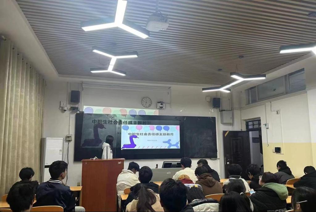 主题班会上,辅导员老师通过PPT的展示,明确大学生的社会责任,就如何结合自身学习和生活践行并提高自己的社会责任意识和能力等问题进行总结,并鼓励同学们要认真规划自己的大学生生活,树立崇高理想,努力提升自己的人生价值。