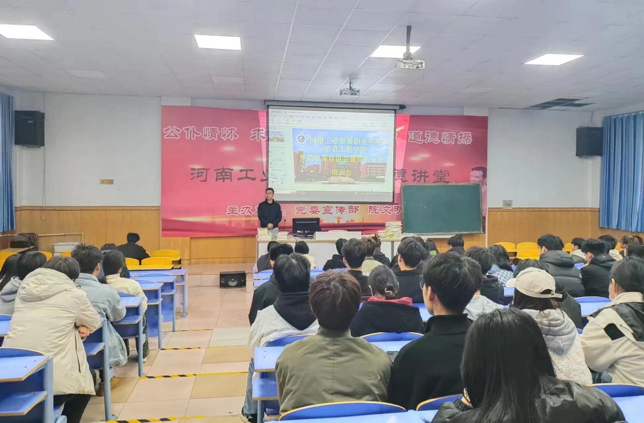 为贯彻落实高校资助政策,做好精准资助,2023年11月10日,信息工程学院在4201教室召开2022、2023级资助政策宣讲会暨资助业务培训会。22、23级所有班长及团支书参加本次活动。此次活动目的为解读国家资助贷款政策,使学生了解国家资助贷款政策。