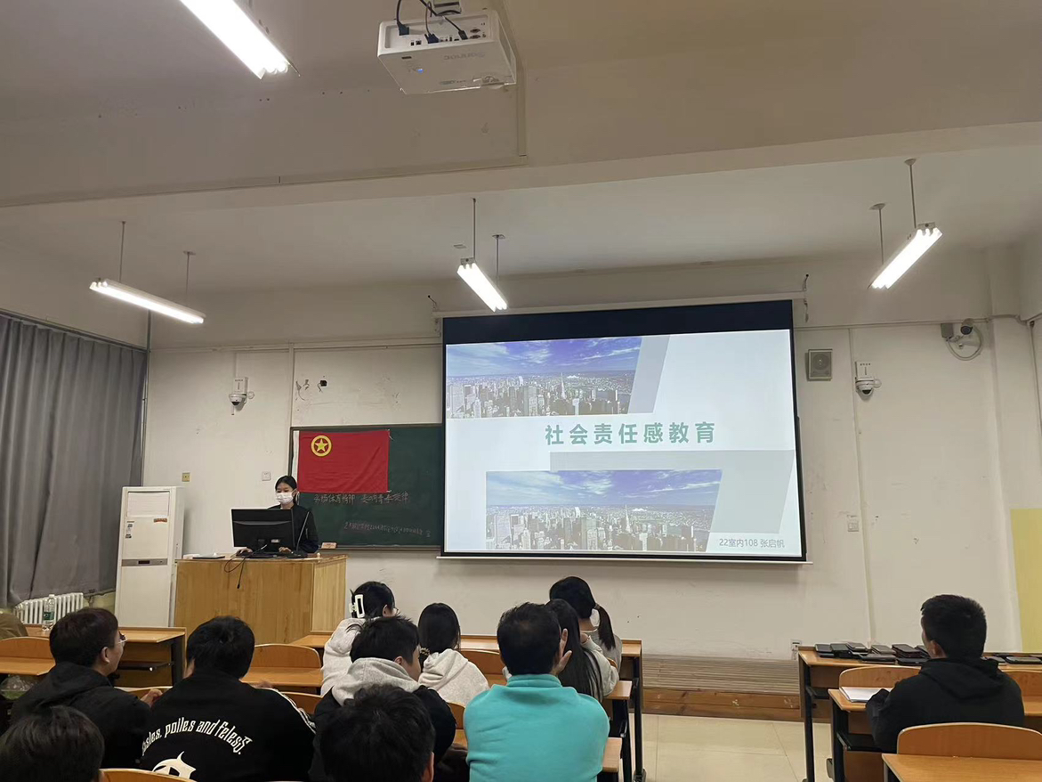 通过此次主题教育班会,不仅帮助同学们认识到了社会责任感的深刻含义,加强了思想引导工作,更坚定了其学习本领回馈社会的信念,让同学们认识到对国家、集体以及他人的担当态度,是每个大学生必须具备的基本品质。