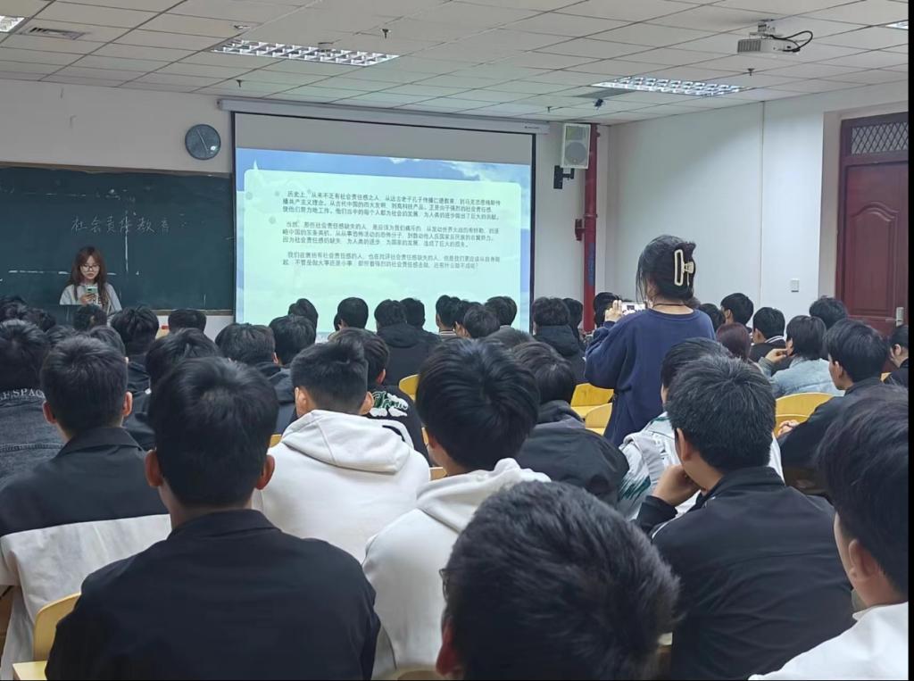 为进一步加强大学生社会责任的教育培养,培养学生对国家和集体的关怀、责任与担当提高责任意识,培养同学们的责任意志和信念,使同学们能坚定地履行责任而不是遇到干扰或困难就逃避责任。汽车工程学院于11月9日,在图书馆6007教室开展社会责任感教育相关主题活动,此次活动由23级新能源103班团支书王思雨同学主持,全体成员积极参加。