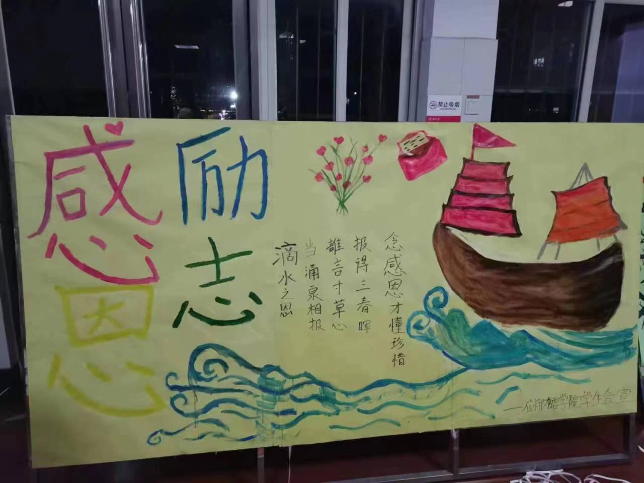 为了能够明确学生感恩意识,让学生学会识恩、知恩,善于施恩,并增强学生把感恩之情化为学习中自强不息、顽强拼搏的励志精神。应用外语学院通过画报展板,班会等形式组织学生开展感恩教育活动。