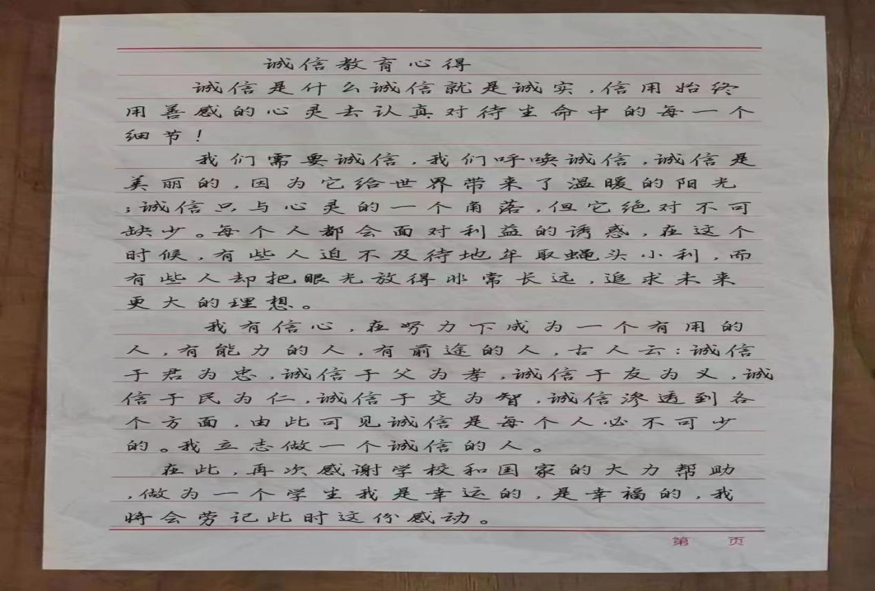 受资助中职学生通过此次班会,积极分享自己的所思所想,有些同学在班会结束后拿起笔记本写下自己的看法并认真记录下来,相信“诚信”的种子会在学生的心中生根发芽,并会伴随他们的一生。