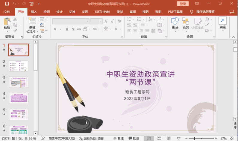 为深入贯彻落实国家高校资助政策,进一步做好资助政策宣传工作,粮食工程学院继续落实中职学生资助宣传“两节课”制度,开展资助政策宣讲会。