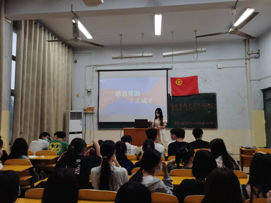 在主题活动中辅导员对班级学生进行解答和教育。俗话说得好,没有不劳而获,天上没有馅饼可掉,每一次的获得,都应该有一定的付出,而党和国家给予我们的帮助是我们这一代非常幸运和开心的事。是生活在这一代的贫困生的幸福和骄傲,党和国家的助学金让学生深深感受到了国家对我们的帮助,也让我们深深感激国家,对社会有了一种责任感,有了一种骄傲。