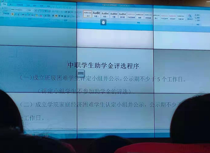 辅导员许春瑶向同学们介绍了《河南学生资助政策简介——中等职业学校家庭经济困难学生资助政策体系(2020年)》的主要内容,包括:国家奖学金、国家免学费、国家助学金、“雨露计划“、定岗实习、校内资助等。并对各项资助政策的适用对象、资助标准、申请办法等做了详细的解读和说明。随后,对本学年拟获助学金名单进行公示。