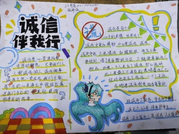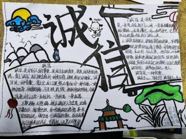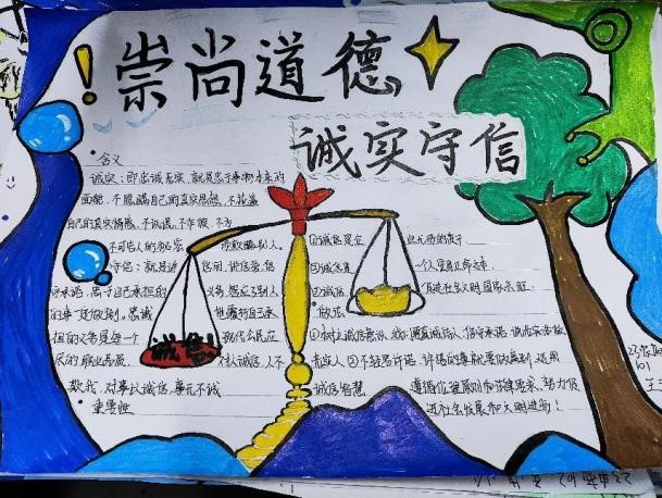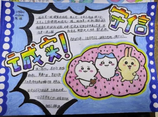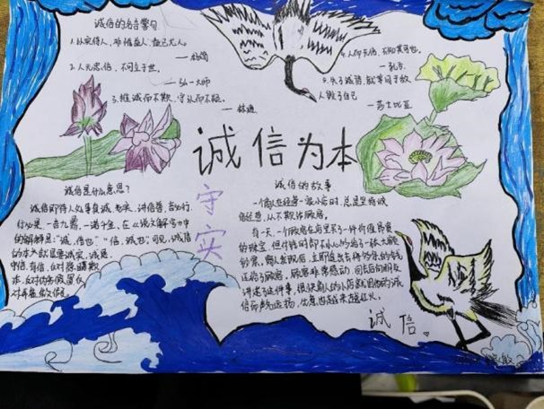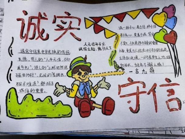 本次活动以班级为单位,各班学生积极参与,围绕诚信主题,发挥自己的创意和想象力,制作了一幅幅内容丰富,形式多样的手抄报。通过精美的绘画、深刻的文字,同学们生动地展现了诚信的内涵、意义以及在生活中的重要性。此次活动不仅锻炼了大家的动手能力和创新思维,更重要的是在潜移默化中强化了大家的诚信意识。