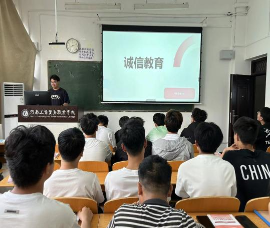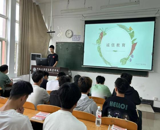 根据《河南工业贸易职业学院2024年学生资助政策宣传及资助育人工作实施方案》的通知文件精神,为深入推进资助育人,引导学生诚实守信,推动汽车工程学院诚信文化建设,提高学生诚信意识。2024年5月24日,汽车工程学院在2407教室开展了一场以“诚信之花,绽放校园”为主题的诚信教育活动。