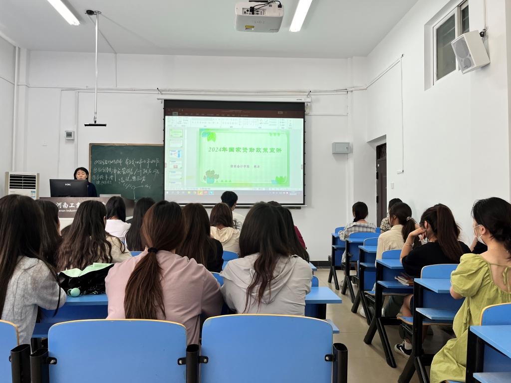 为做好我院2024年级秋季学期学生资助工作,切实保障家庭经济困难学生享受党和国家的各项助政策,5月27日,财务会计学院在1201教室举行资助政策“两节课”宣讲会,由韩冰老师主持,22级在校学生代表参加了本次宣讲会。