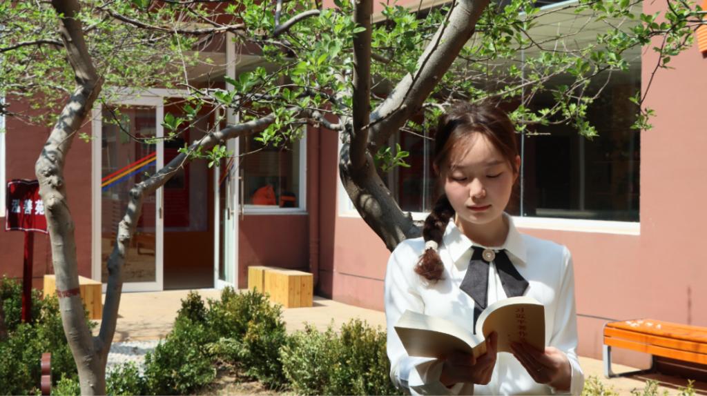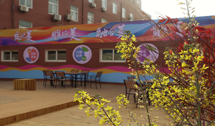 社区的春天,不仅限于视觉盛宴。玉兰树下、紫藤廊边,原木长椅静候时光。黄昏时分,学子并肩而坐,英语单词与书页声交织,伴着橙子汽水的甘甜。墙上“发现美 雕琢美 融合美 赞美美”的标语,此刻化作最温柔的旁白。
