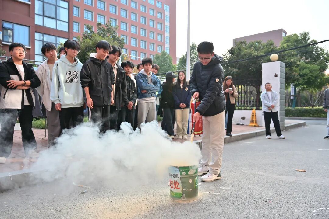 讲座现场,以“校园消防安全”为主题。围绕“发现险情如何报告、怎样正确使用灭火器、 火灾发生后怎样安全疏散逃生”三个层次进行理论和实操授课。