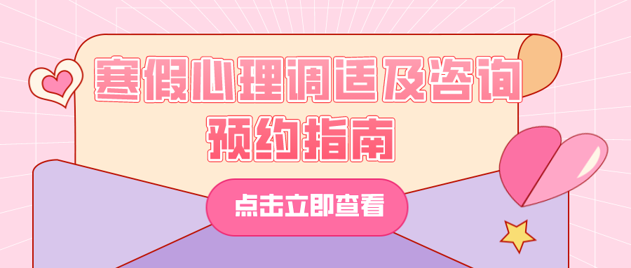 同学们,带好这份寒假心理调适及咨询预约指南,去实现你未完成的计划,整理好你的心情,保持良好状态迎接新的一年吧!