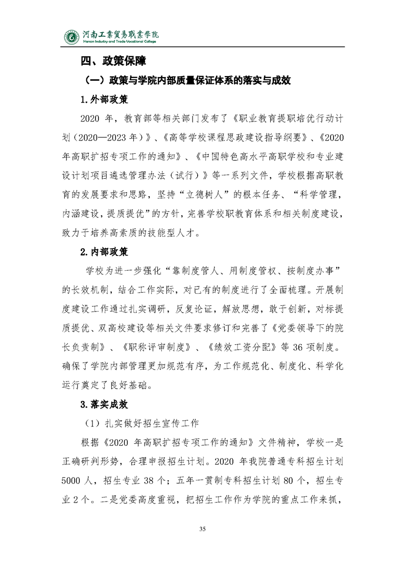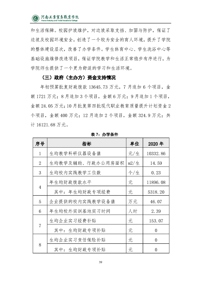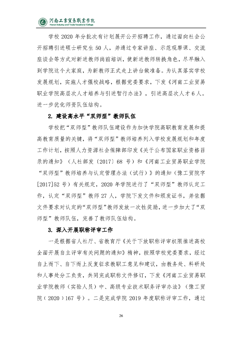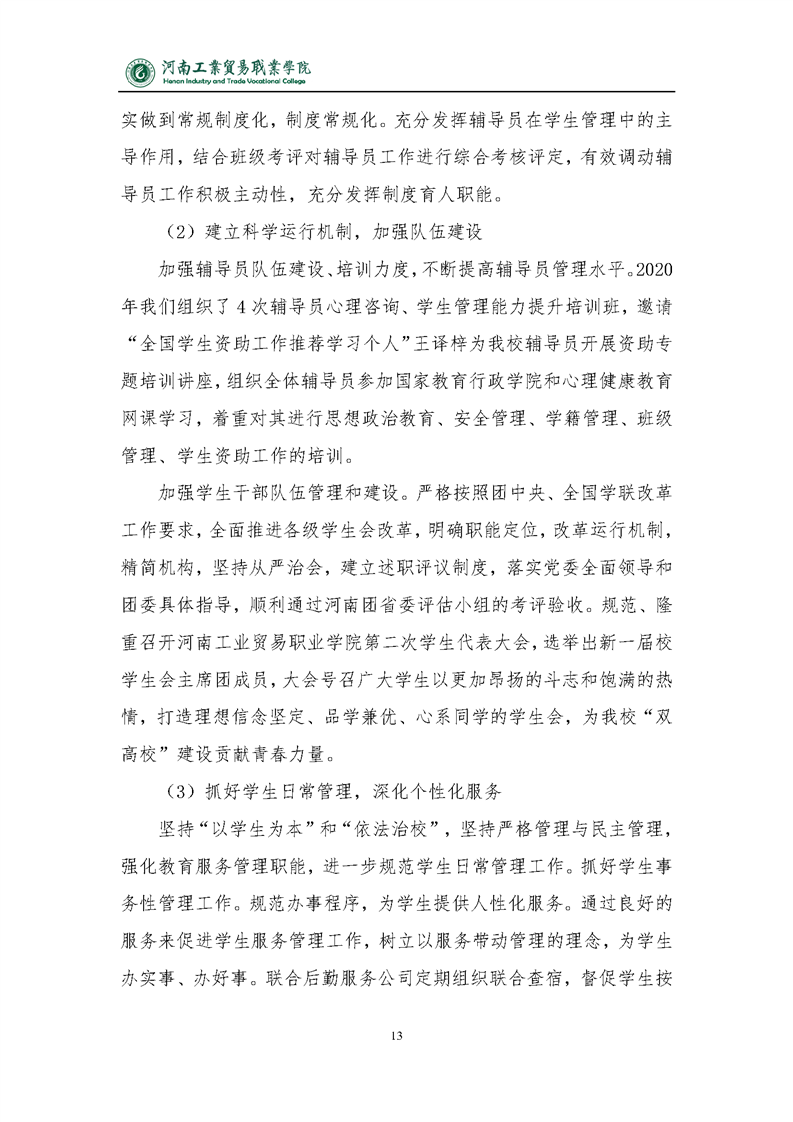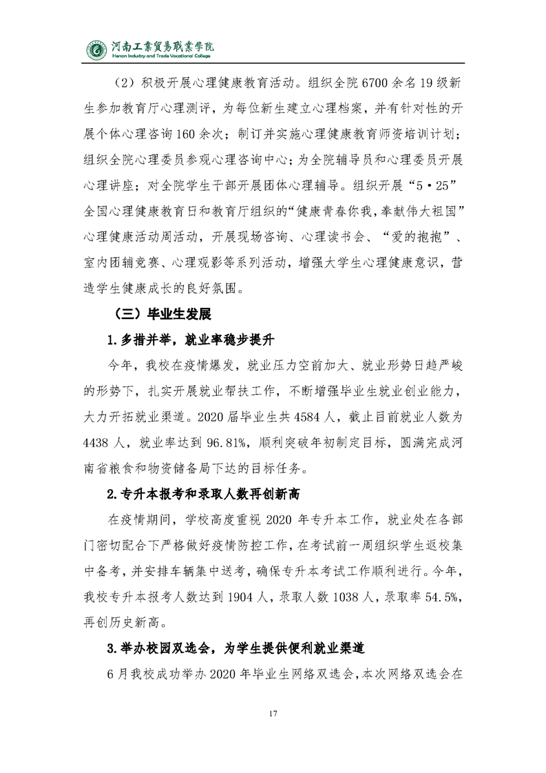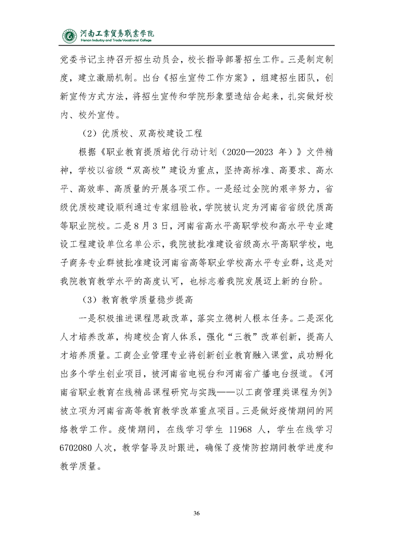 2020年河南工业贸易职业学院质量年度报告