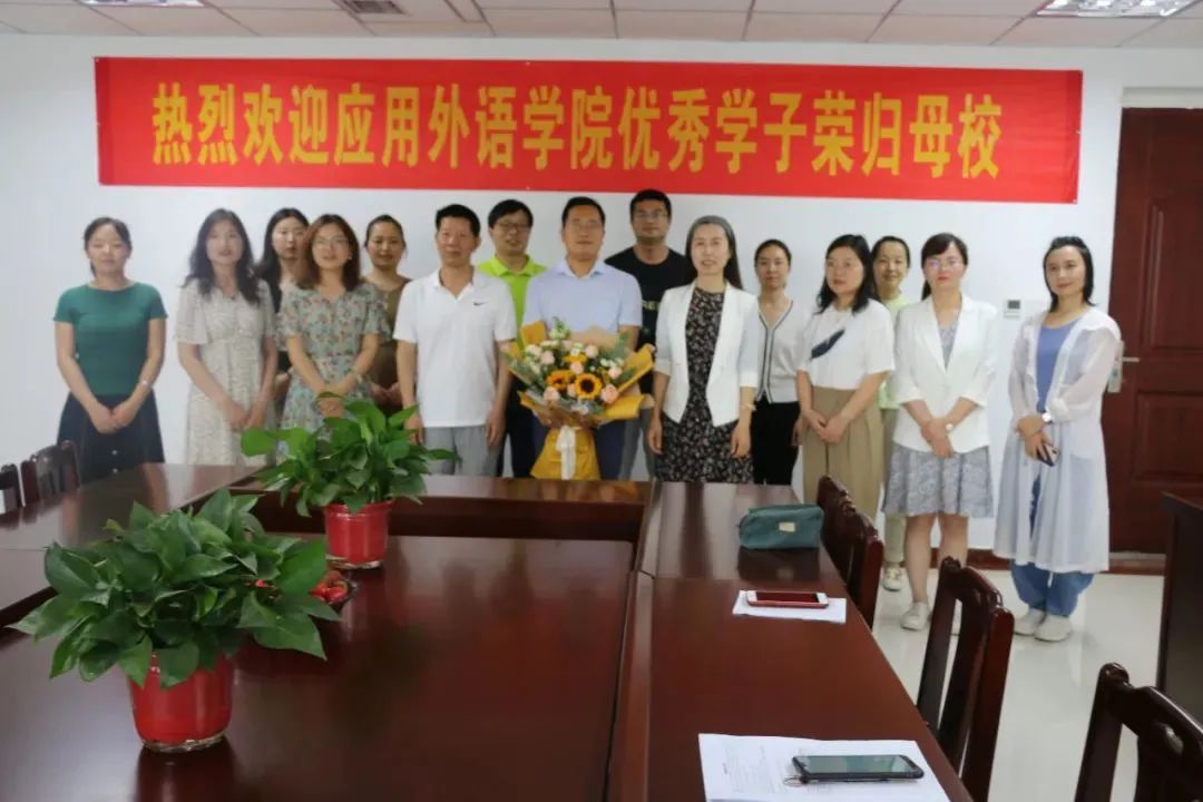 人生最惜同窗日,白首难忘共度时。在庆祝党的百年华诞之际,河南工业贸易职业学院也迎来了她71岁的生日。工贸71年风雨历程,为国家培养出众多高端应用型技术人才,校友遍布五洲四海。为了响应学校“重聚校友,共谋我校发展大计”的号召,加强校友间的沟通交流,激发广大校友的爱校、荣校情怀,6月3日,应用外语学院举办了“情系外院,共谋新篇”为主题的校友返校活动,迎来了第一位返校毕业生——2005级优秀学子李杨同学。