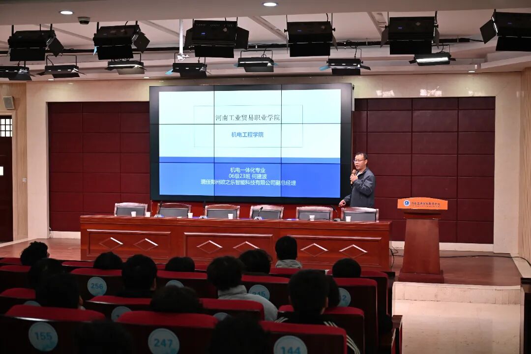 活动特邀两位深耕行业多年的杰出校友担任主讲嘉宾——中粮(郑州)粮油工业有限公司生产部机修厂厂长孙敬民、郑州欧之乐智能科技有限公司副总经理何建波;机电工程学院院长冯春丽、副院长牛威杨、副院长党霞及陈海芳老师出席活动,与在校生代表齐聚一堂,共同开启这场兼具实践深度与思想价值的育人盛宴。
