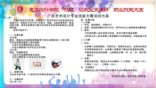 最后,段文花院长宣布:“2021年艺术设计学院‘技能,让就业更美好’职业技能大赛正式开幕!