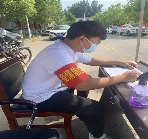 20室内106班谢成同学参加了平顶山市宝丰县大学生返乡社会实践活动,通过这次活动体会到了基层工作者的不易。他主要工作是在疫情防控点对小区内部人员的进出进行体温检测、健康码排查、小区内部消防,疫苗接种情况调查。他说很荣幸能够作为青年志愿者代表之一参与到宝丰县杨庄镇疫情防控的工作中,简简单单的工作能够让他认识到青年人的责任与担当。黑暗总会过去,黎明终将到来,愿山河无恙,人间皆安,志在心中,愿在行动,尽微薄之力,不负青春,不留遗憾。