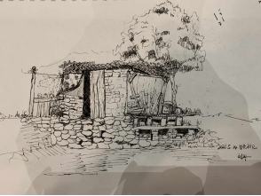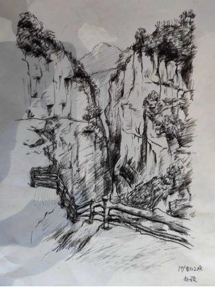 5月14日,郭亮村笼罩在蒙蒙细雨中,山间美景在云雾的笼罩下更增添了几分仙气。早上和中午出发前,四位教师分别对各班同学进行了纪律要求和绘画指导。