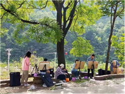 回到住地,在饭后,师生围在一起,津津有味的听着老师对白天作画的点评和建议,以更好的状态迎接第二天的写生。