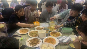 中午11点半,车辆陆续到达,写生基地的老板已经为同学们备好了可口的饭菜。考虑到回族同学的饮食习俗,还专门为回族同学准备素食,同学们整齐有序的到餐厅就餐。