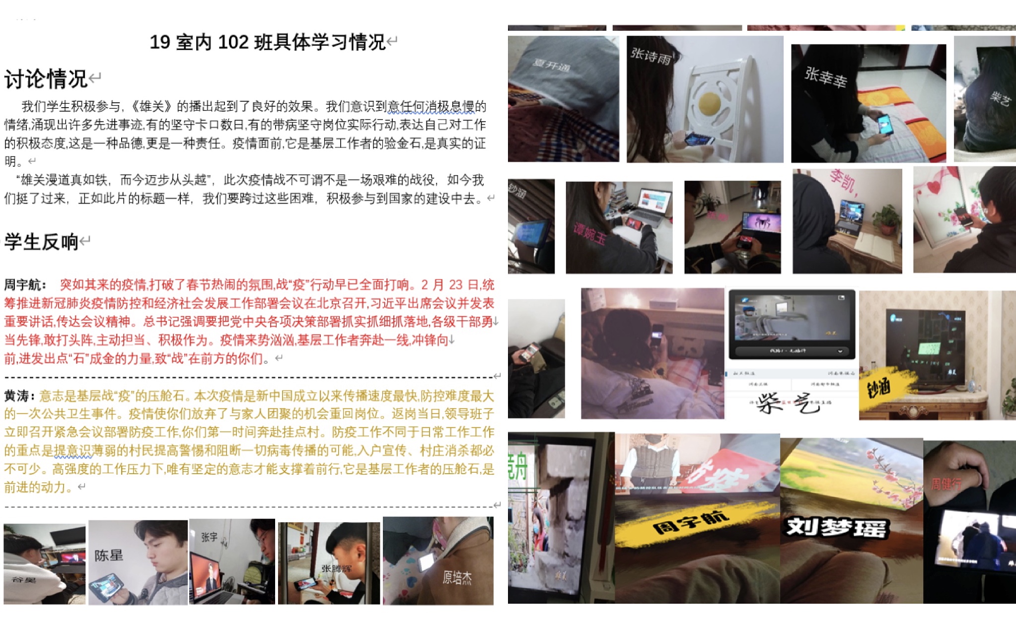 一场没有硝烟的战争,人民领袖亲自指挥、部署;一次治理能力的大考,中国制度优势焕发磅礴力量。该片分为六集,今日播出的主题为《河南力量》,全体师生收到通知后认真观看,并积极在艺术系微信群中上传观看照片。全体教师通过观看,表示《雄关》的主要内容是思想政治教育的生动教材,会把此次观看内容落实到课程思政教育教学改革中。
