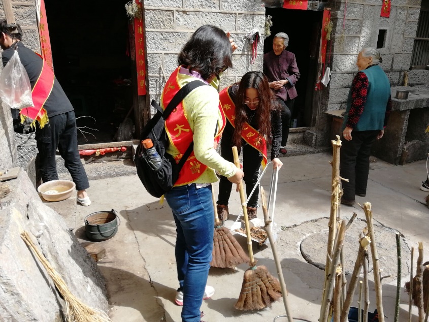 2019年5月14日,艺术设计系外出写生老师带领学生在石板岩开展志愿服务活动。石板岩志愿者老师带领各班中队长进行逐户探访,为石板岩村独居、孤寡老人送上祝福和关怀。志愿者们通过与长者聊天的方式了解到她们的生活状况,表达真切的关怀,帮助她们清理院子卫生。