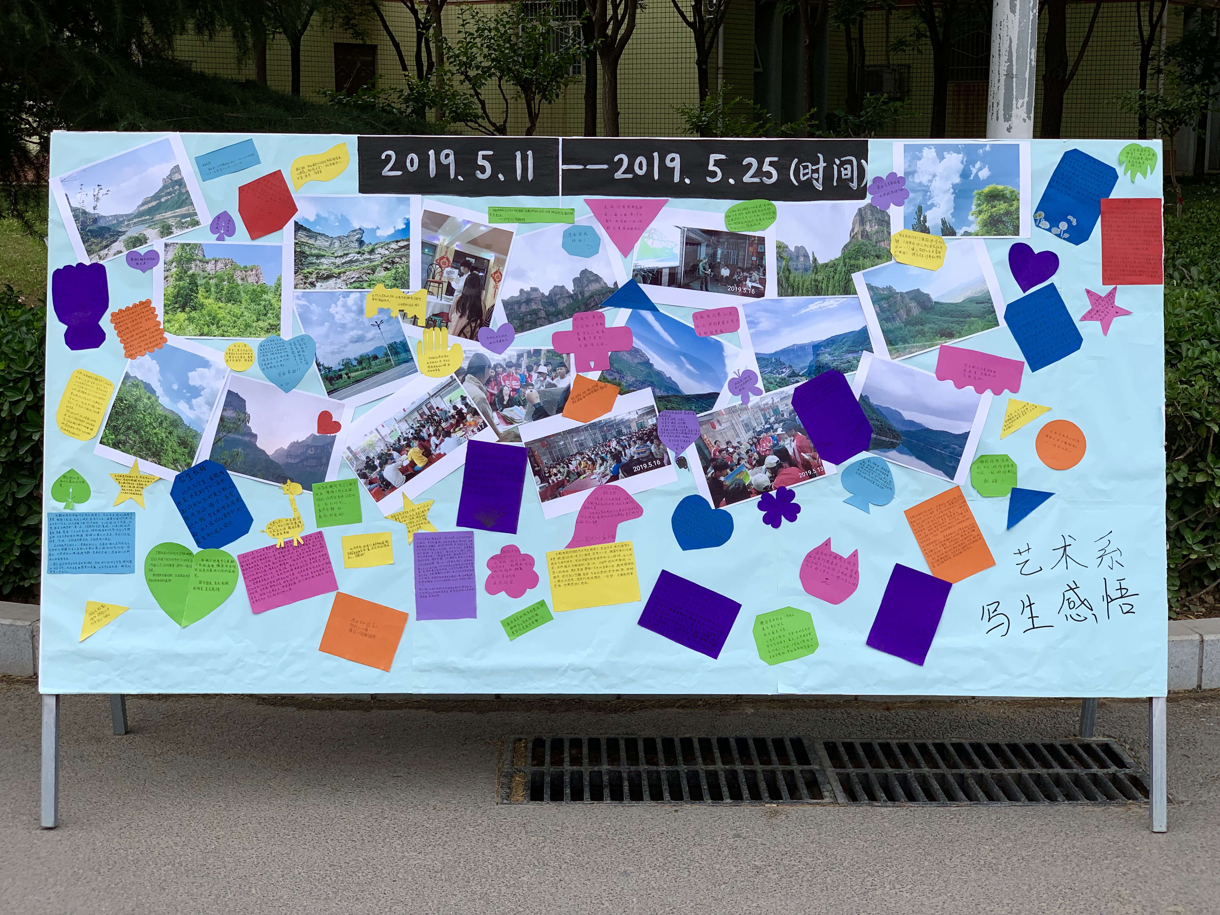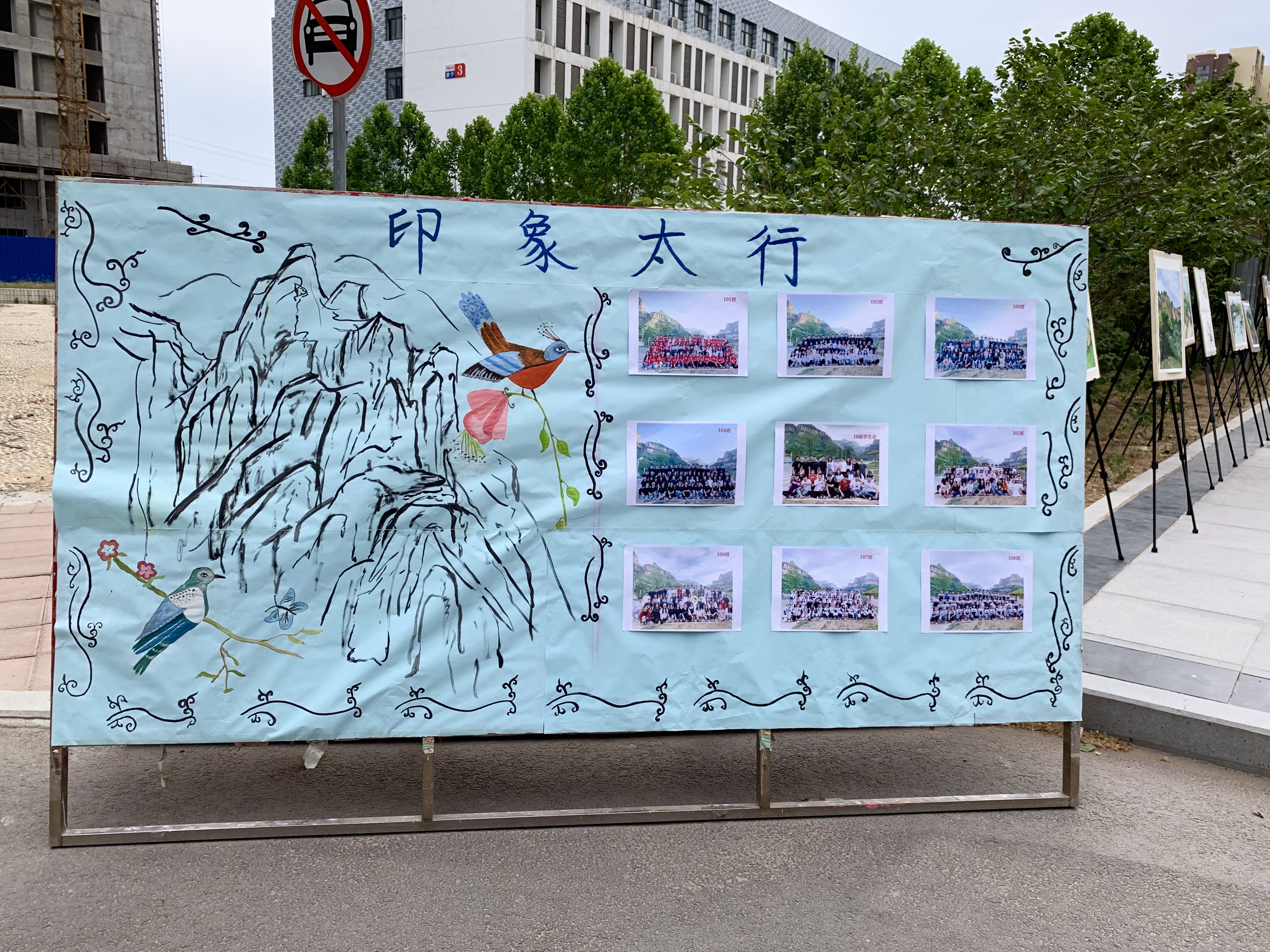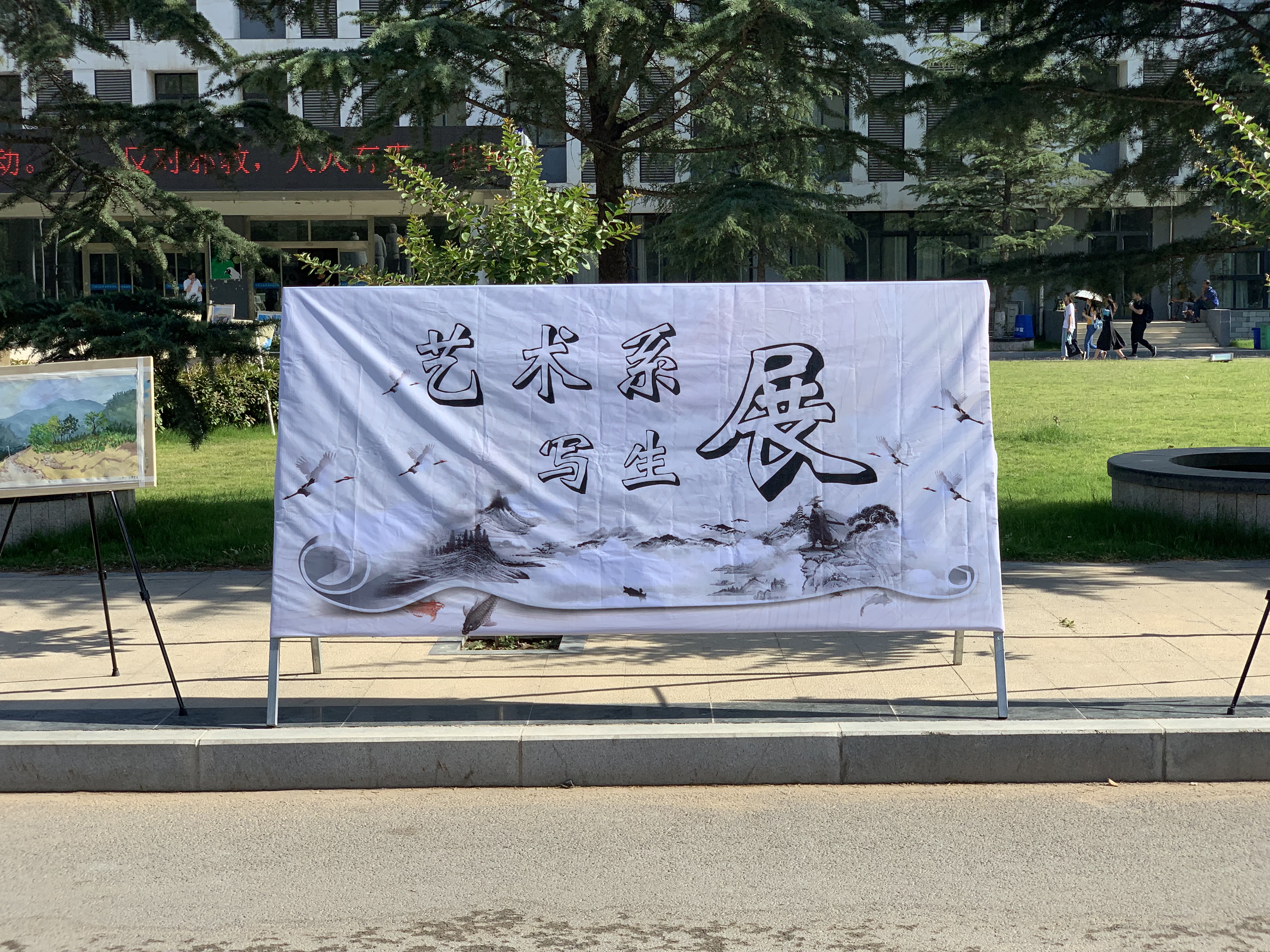 5月28日上午,艺术设计系2018级太行山写生作品,开始在办公楼、教学楼和红旗广场进行展出,历时两天。