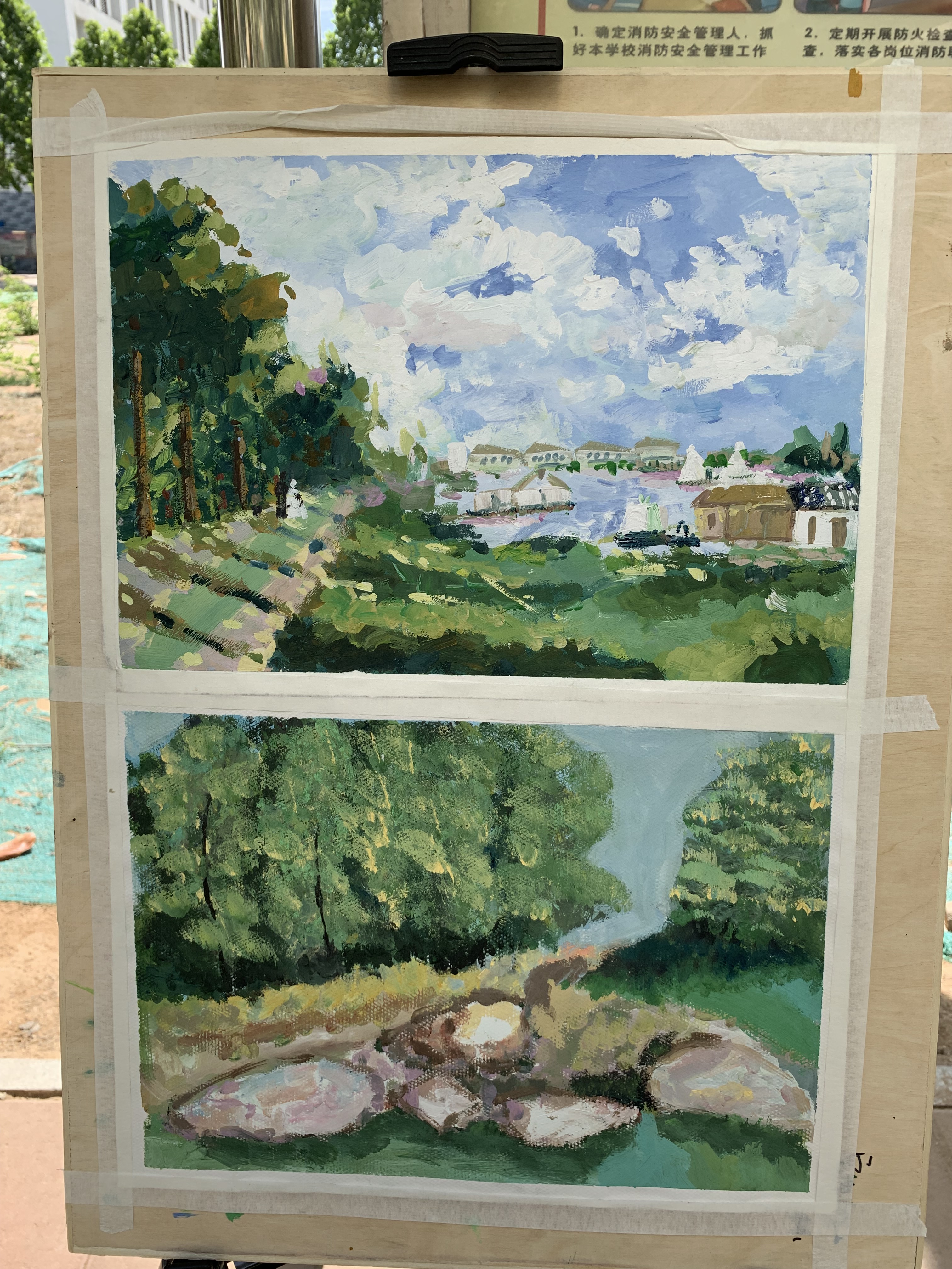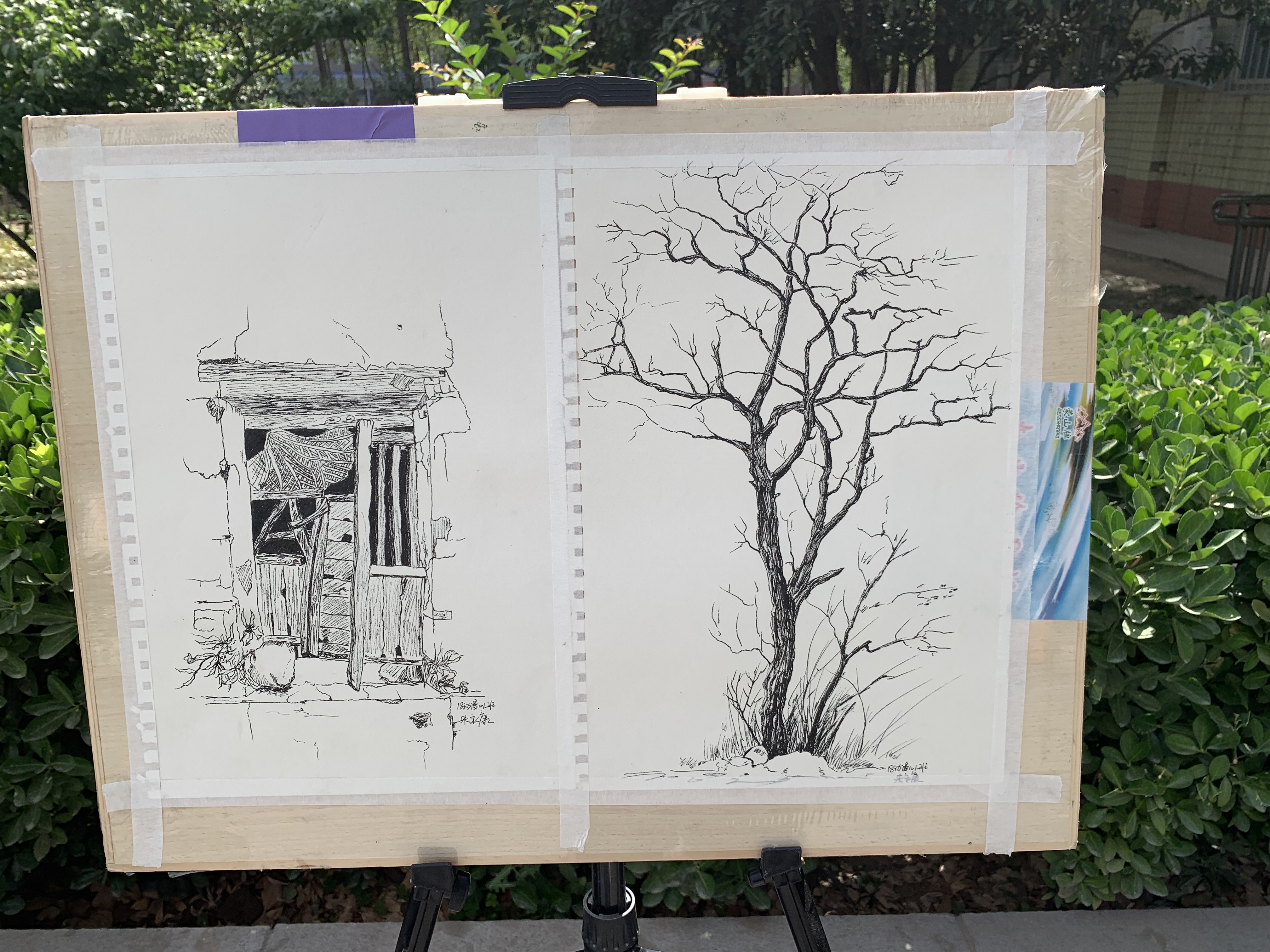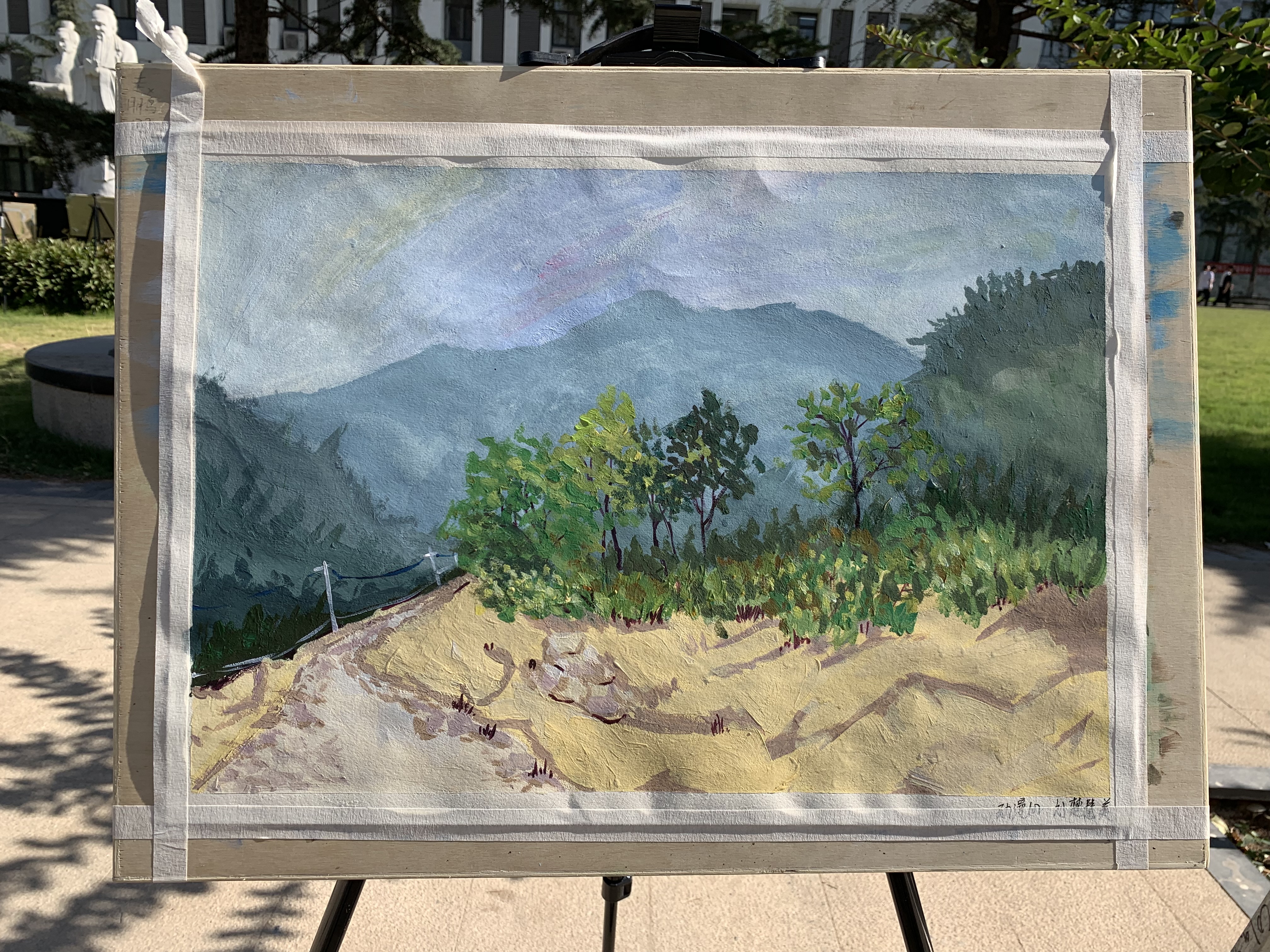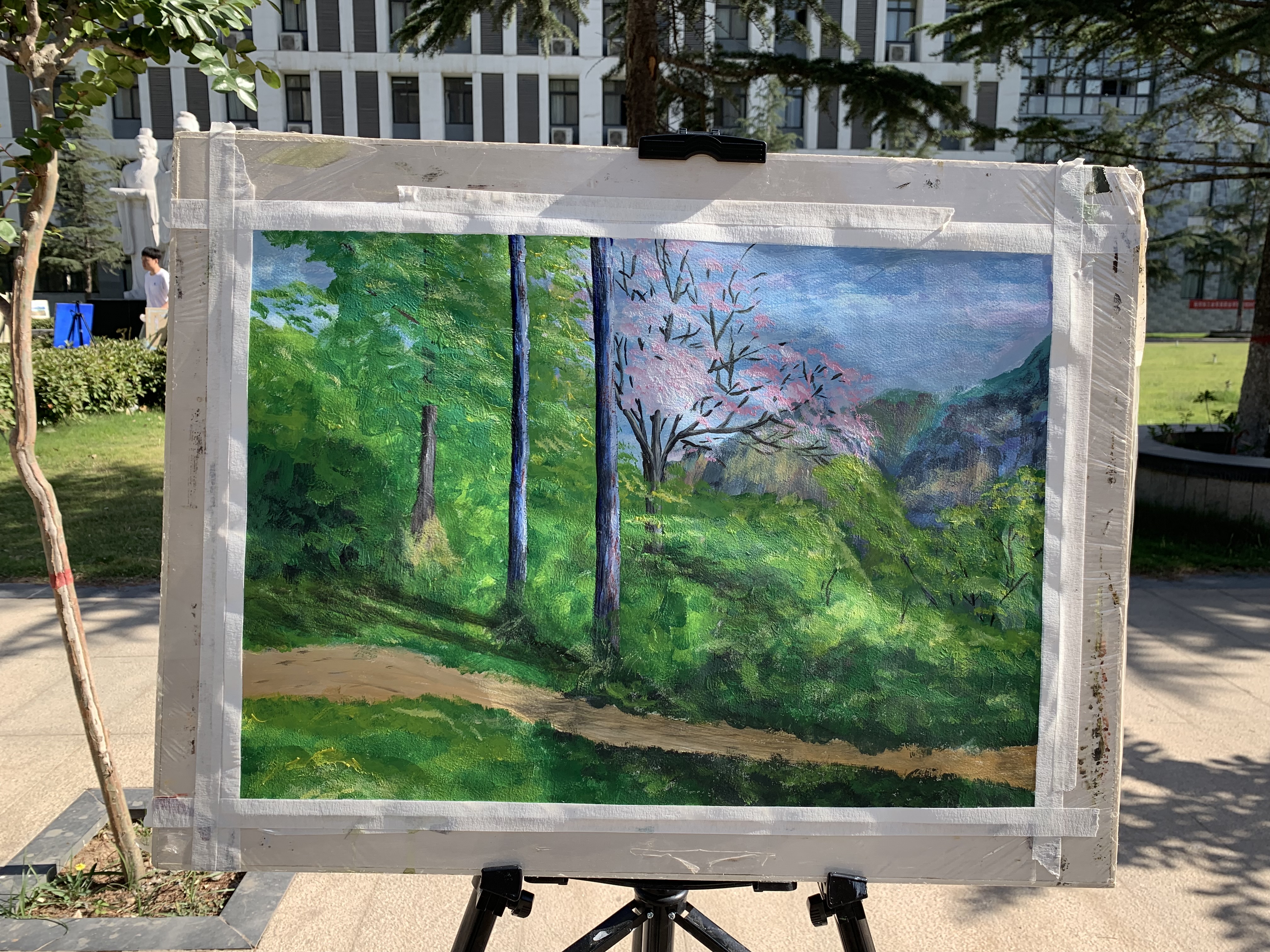 5月28日上午,艺术设计系2018级太行山写生作品,开始在办公楼、教学楼和红旗广场进行展出,历时两天。