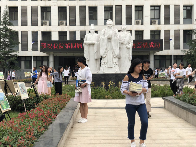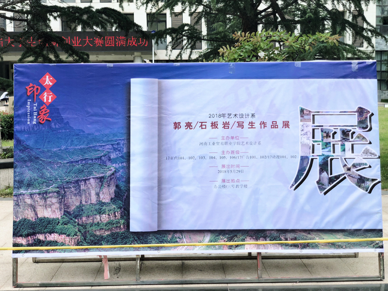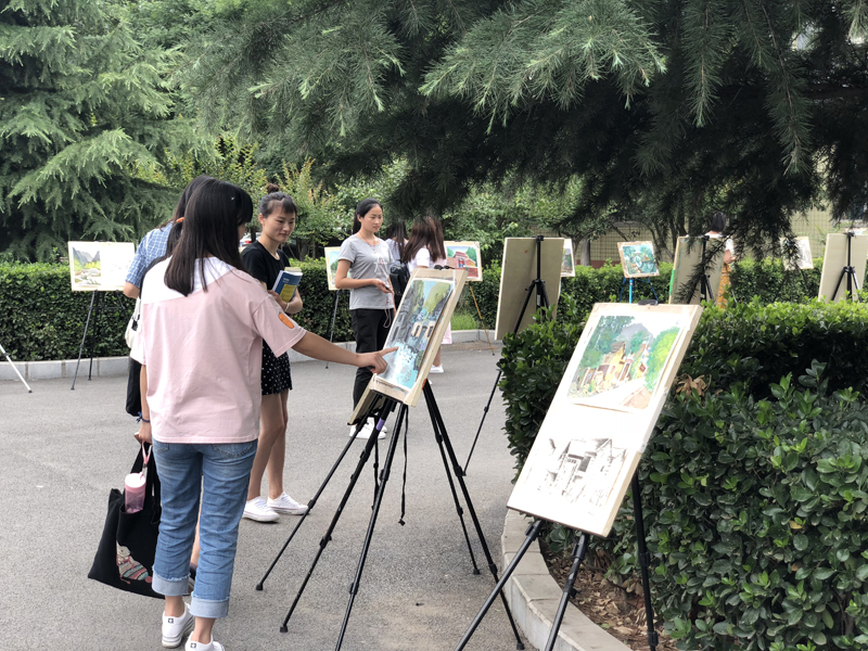 5月29日上午,艺术设计系2017级太行山写生作品,开始在办公楼、教学楼和红旗广场进行展出,历时两天。