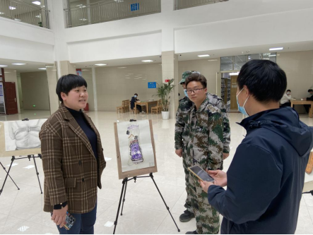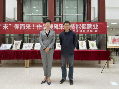 为展示学生作品风采,促进学生专业技能的提升,2022年3月15日,艺术设计学院在图书馆一楼大厅举办2021级广告艺术设计专业精微素描作品展,院长段文花、书记乔清强、副书记郭玉华到现场参观。