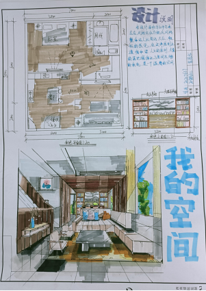 1. 手绘效果图、3d max效果图项目(20级):以“我的空间我做主”为题,绘制一套居住空间(单身标间,面积不大于50平方米)内容。