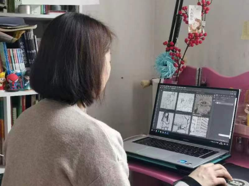 由于疫情原因,作品的提交方式改为电子版,教研室主任武郑艳在收到全部作品后认真组织动漫教研室老师进行线上作品评选。